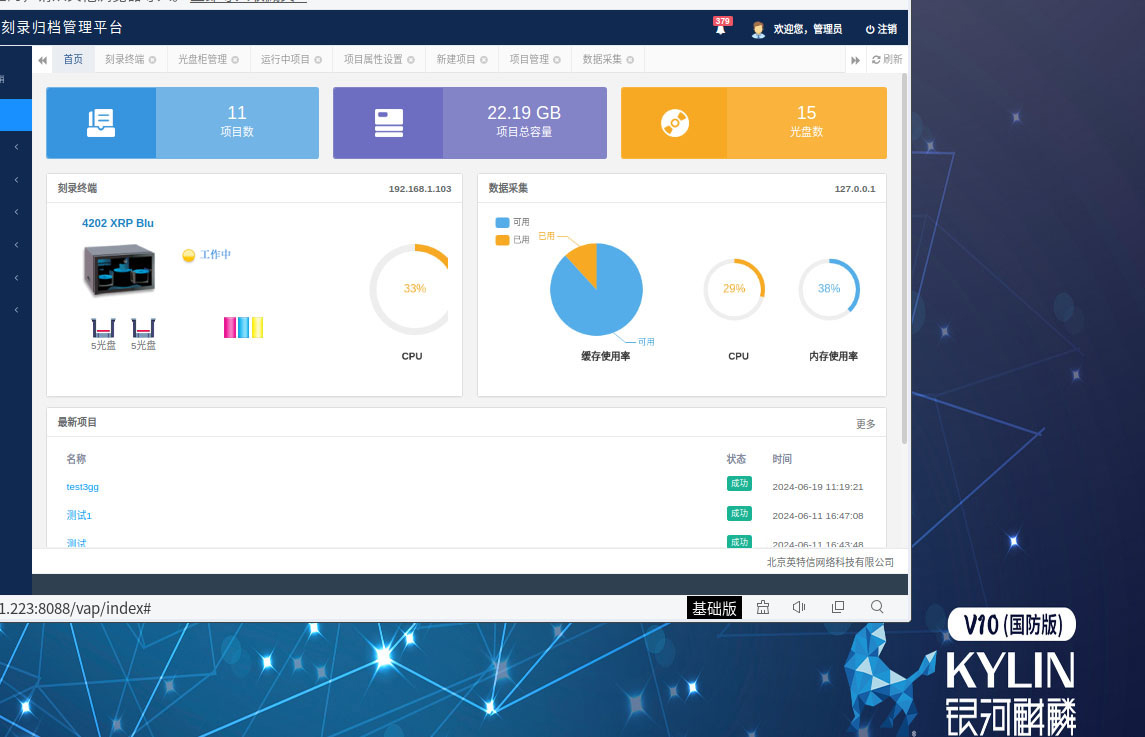 目前,雖解決了前端采集、中端傳輸,但完成同步錄音錄像視、音頻數(shù)據(jù)存儲歸檔需耗費大量人力時間將視、音頻數(shù)據(jù)下載導(dǎo)出、手動換盤刻錄及歸檔,現(xiàn)有的痛點需求無法實現(xiàn)。擬配一套自動刻錄歸檔平臺,實現(xiàn)集中管控,光盤加密,防拷貝,智能分配刻錄,支持國產(chǎn)化環(huán)境實現(xiàn)監(jiān)控對接。