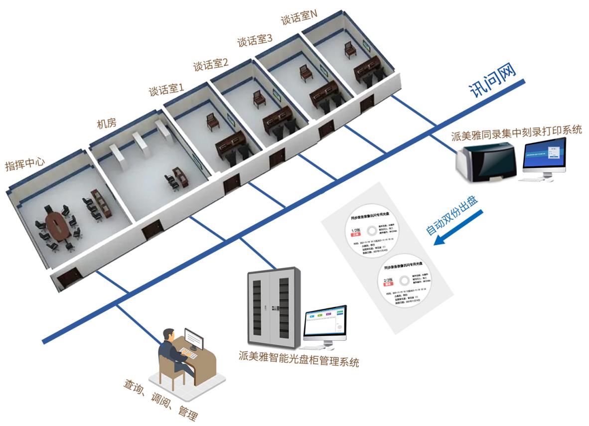 派美雅根據(jù)用戶需求推出紀(jì)委留置談話音視頻數(shù)據(jù)刻錄歸檔管理平臺,滿足國產(chǎn)環(huán)境下應(yīng)用,涵蓋數(shù)據(jù)采集、監(jiān)控對接、光盤加密,防拷貝、集中管控、智能分配刻錄、事后補刻、光盤自動續(xù)刻等功能,實現(xiàn)談話音視頻實時刻錄打印、24小時留置視頻自動定時刻錄備份需求,支持多通道并行下載,全自動刻錄及歸檔談話室及留置室同步錄音錄像視、音頻資料,并自定義光盤封面信息,封面內(nèi)容包含談話訊問次序、套別(A或B)、歸檔單位等標(biāo)識信息。